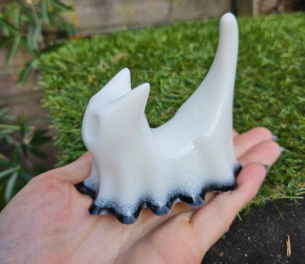 Maak kennis met *BooBoo the Cat*, een betoverende epoxy kat in een speelse spookuitvoering!