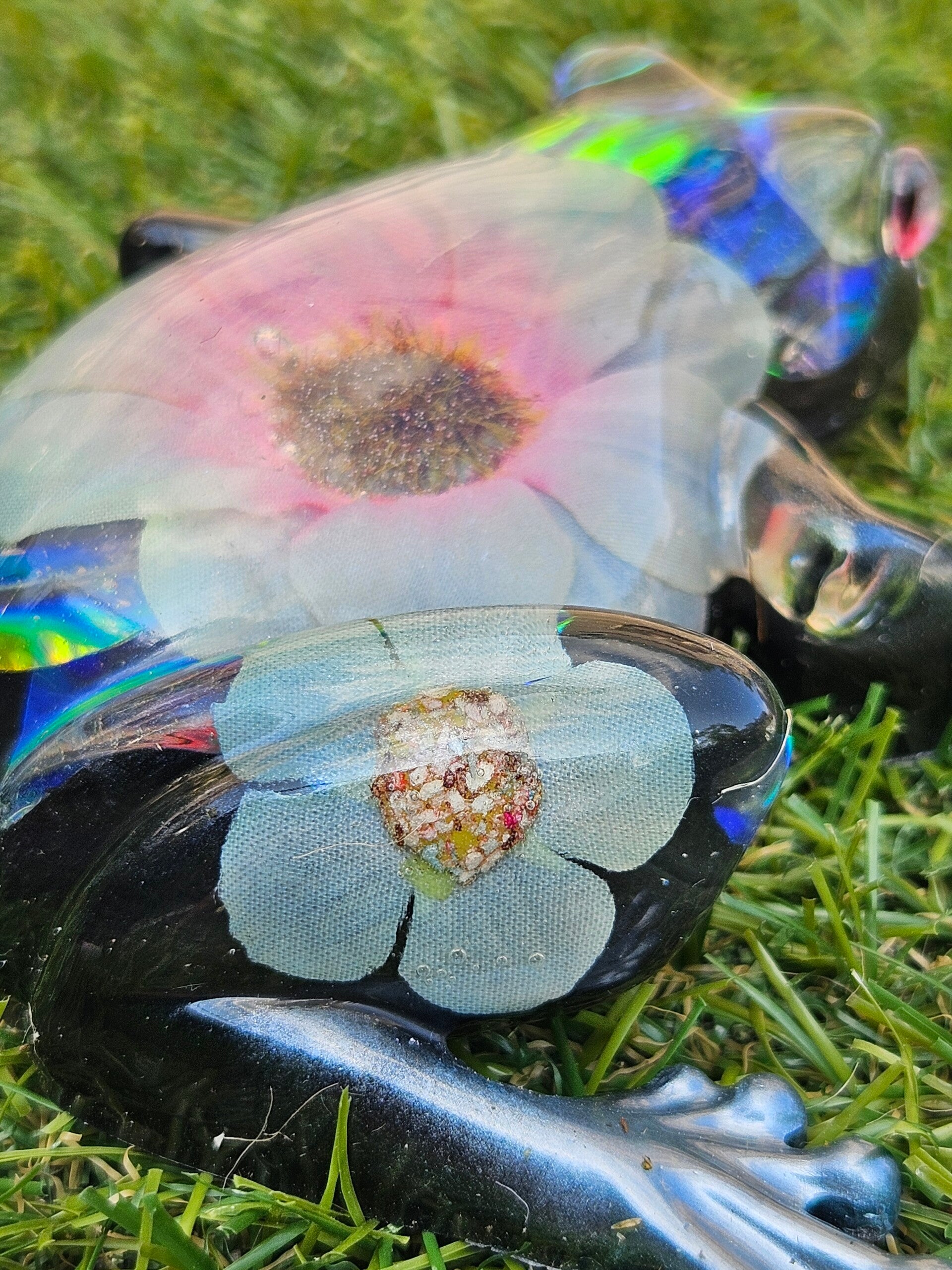 Met zorg en liefde gegoten in meerdere lagen epoxy, bevatten deze kunstwerkjes kleine verrassingen zoals echte bloemen, kleurrijke pigmenten en speelse details. Geen twee kikkers zijn hetzelfde – ieder exemplaar is uniek, net als jij.