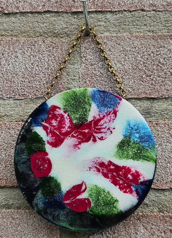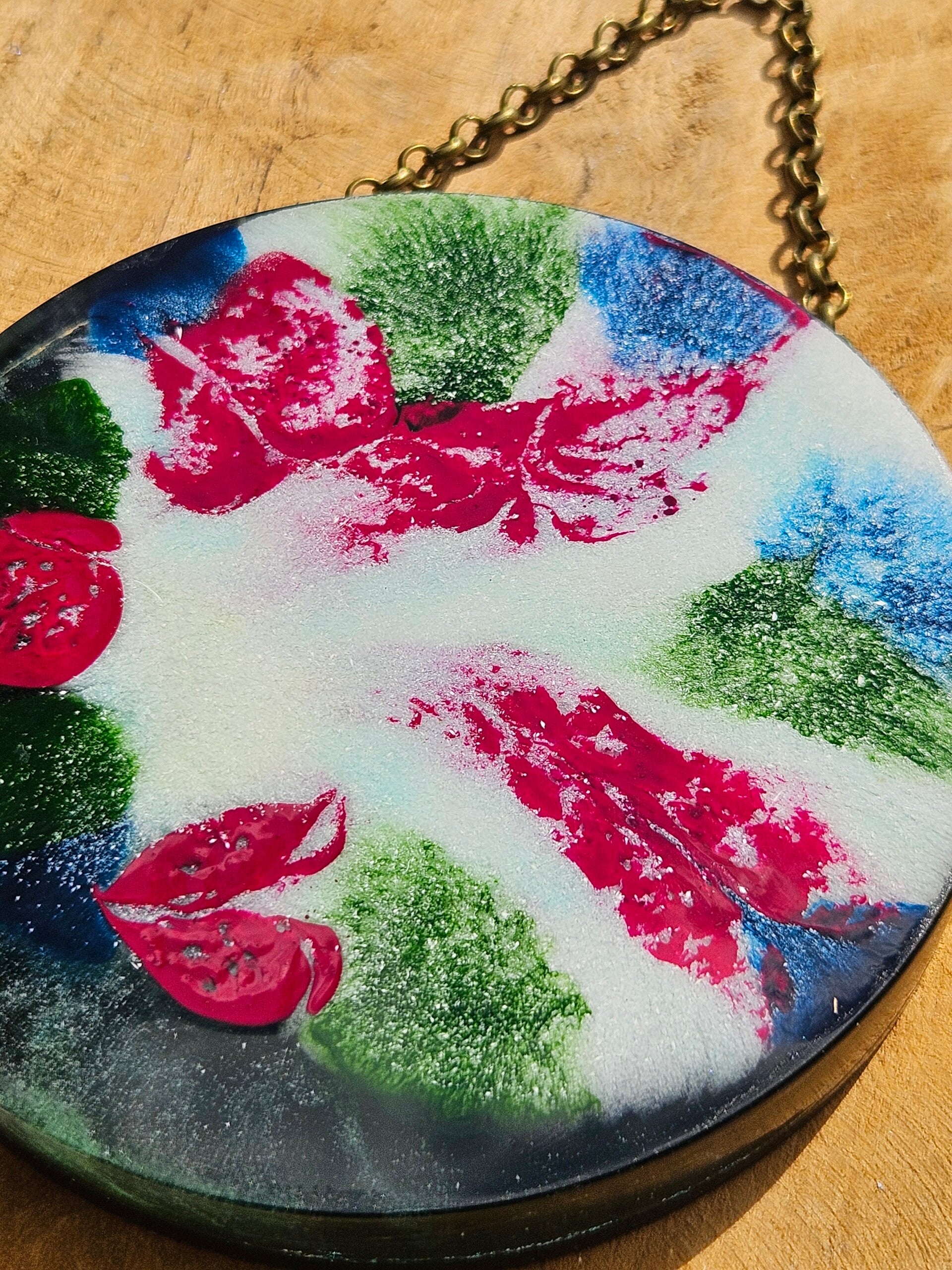 Breng kleur en vrolijkheid aan je muur met deze kleine kunstwerkje! Deze serie heeft een beetje reliëf in het oppervlak. Elke cirkel is uniek, met vrolijke kleuren die lekker spelen en opvallen. Makkelijk op te hangen, zodat je ze overal kunt laten schitteren. Perfect voor wie houdt van een beetje extra kleur en creativiteit in huis! De diameter van de cirkel is 10 cm.
