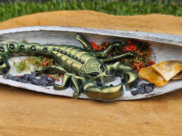 *“Woestijnwonder” – Speels Schorpioen Kunstwerk in Bananenblad*