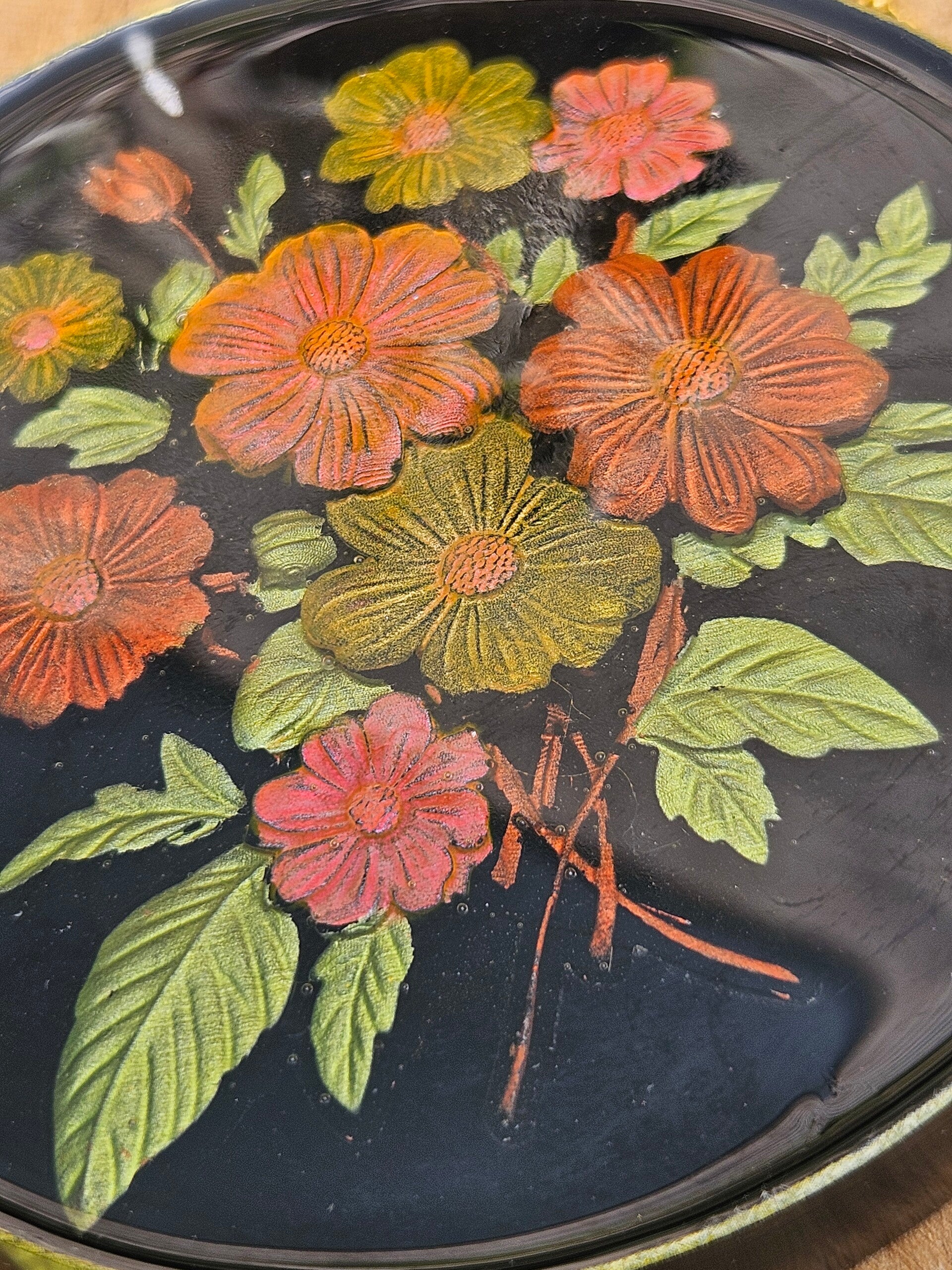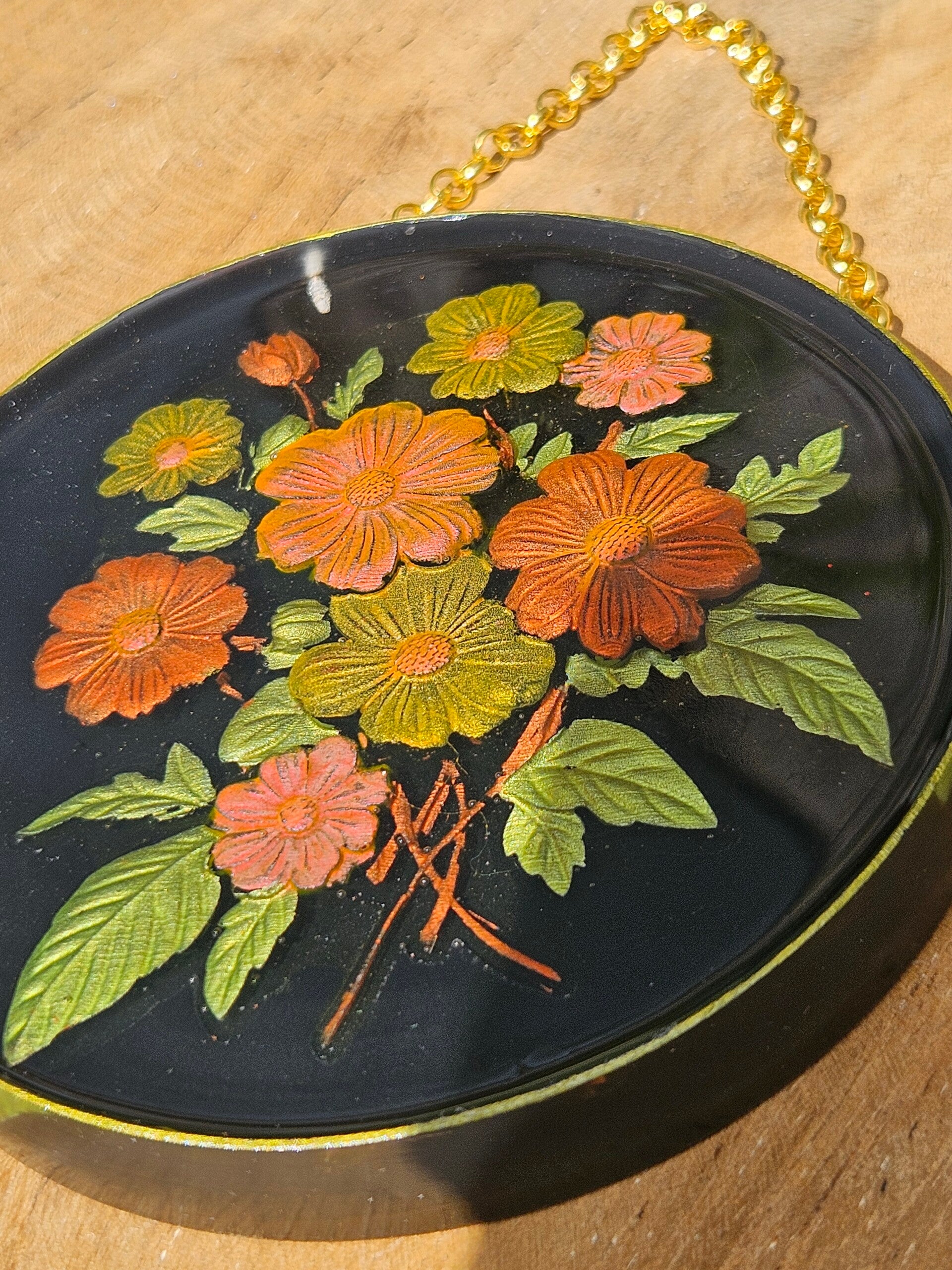 Dit kunstwerkje is gemaakt van sprankelend epoxy en bevat een ornamament gemaakt van epoxy welke gekleurd en ingegoten is. Elke cirkel is uniek, vol kleur en natuurlijke schoonheid, perfect om je muur een frisse, speelse en botanische touch te geven. Makkelijk op te hangen — zo haal je een stukje natuur en kleur in huis.