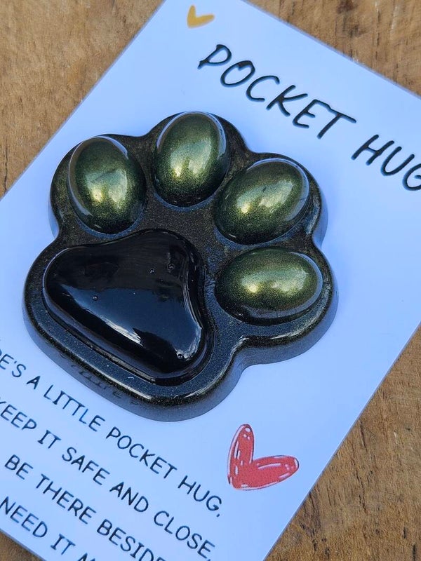 Deze *Paw Print Hug* is met liefde gegoten uit epoxy en symboliseert de onvoorwaardelijke band tussen mens en dier.