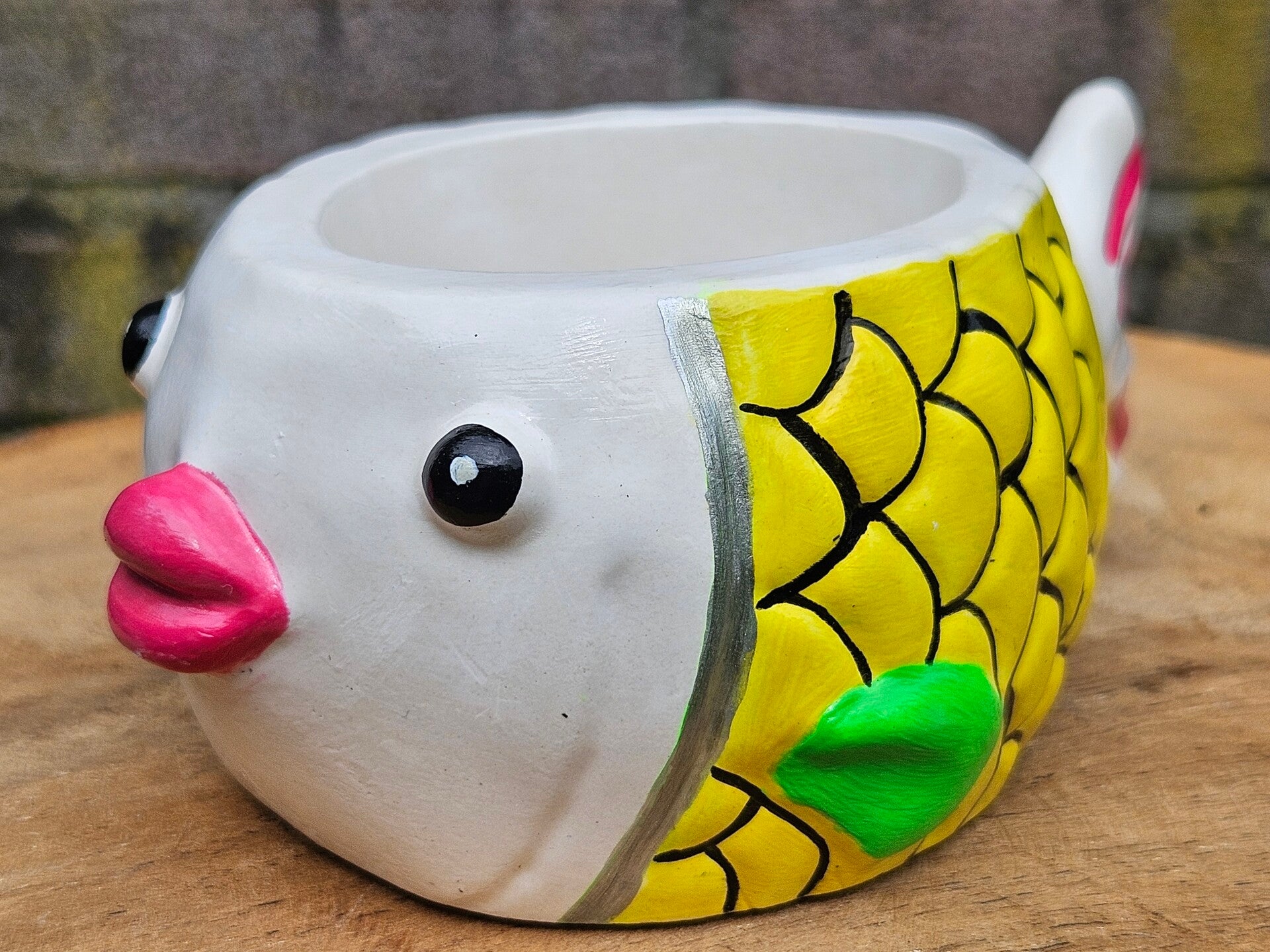 De *Pink Lips collectie* is een vrolijke reeks handgemaakte visjes die nét dat beetje extra persoonlijkheid aan je interieur geven. Elk visje is gevormd als een sierlijk (planten)bakje met opvallende, speelse lippen – de echte blikvanger van het ontwerp.