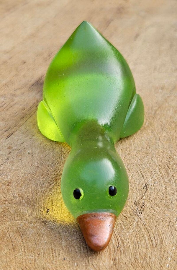 Afmetingen: Lengte 8 cm, breedte 3 cm, hoogte 2,5 cm. Materiaal: EpoxyKleur: Transparant Groen