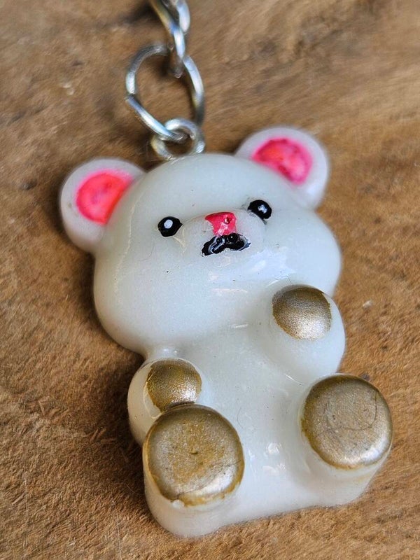 Dit schattige mini beertje van epoxy is een perfect klein vriendje om altijd bij je te dragen! Met een hoogte van 2 cm, een breedte van 2 cm en een dikte van 1 cm is dit beertje compact en fijn om vast te houden. Inclusief hanger is de totale lengte ongeveer 9 cm — precies de juiste maat om op te vallen zonder te zwaar te zijn.