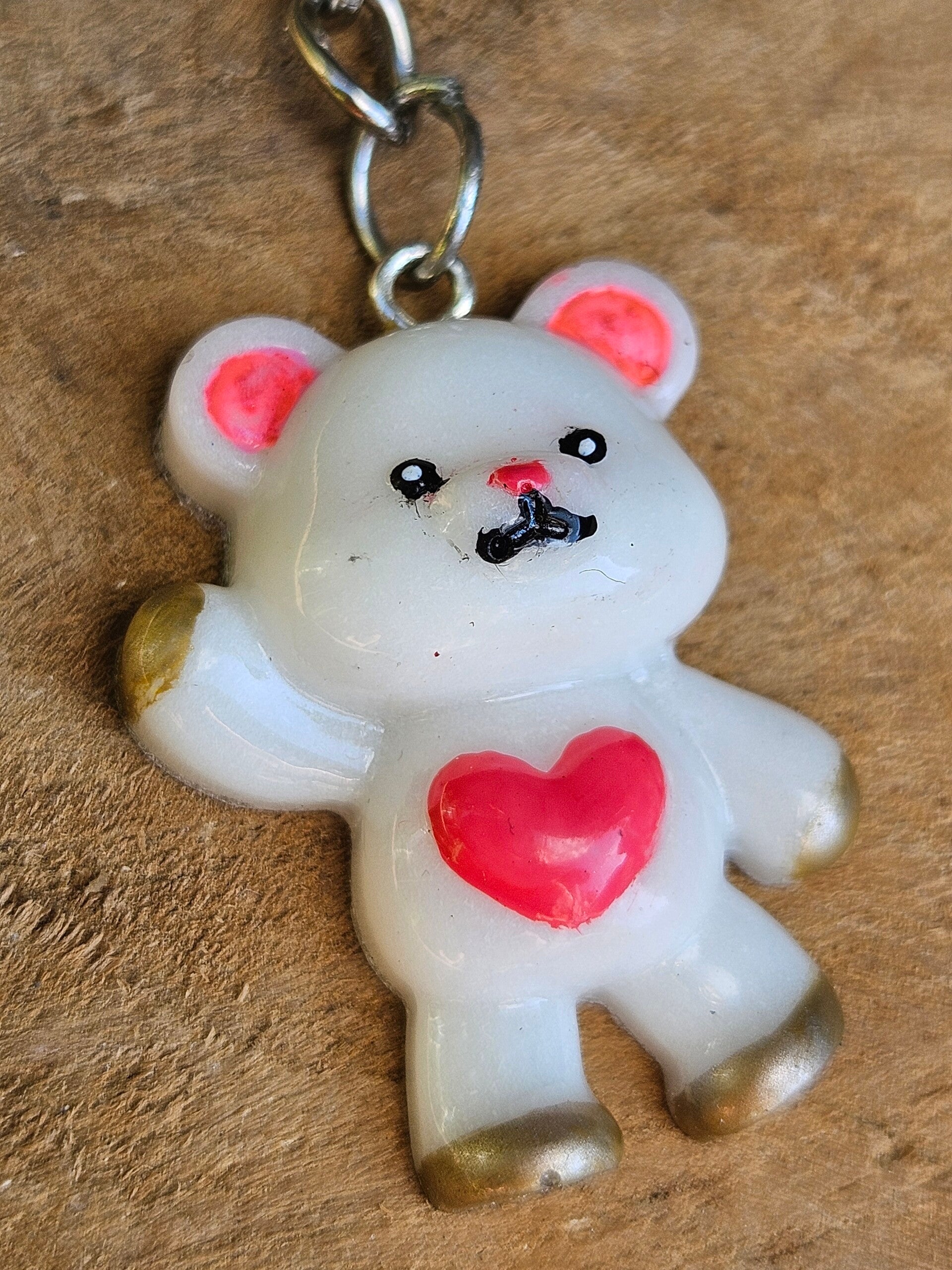 Dit lieve beertje van epoxy is klein maar o zo charmant! Met een hoogte van 2,5 cm, een lengte van 2,5 cm en een dikte van 1 cm is het een perfect compact maatje om altijd bij je te dragen. Inclusief hanger is de totale lengte ongeveer 9 cm — een subtiel en schattig accessoire voor aan je sleutelbos of tas.