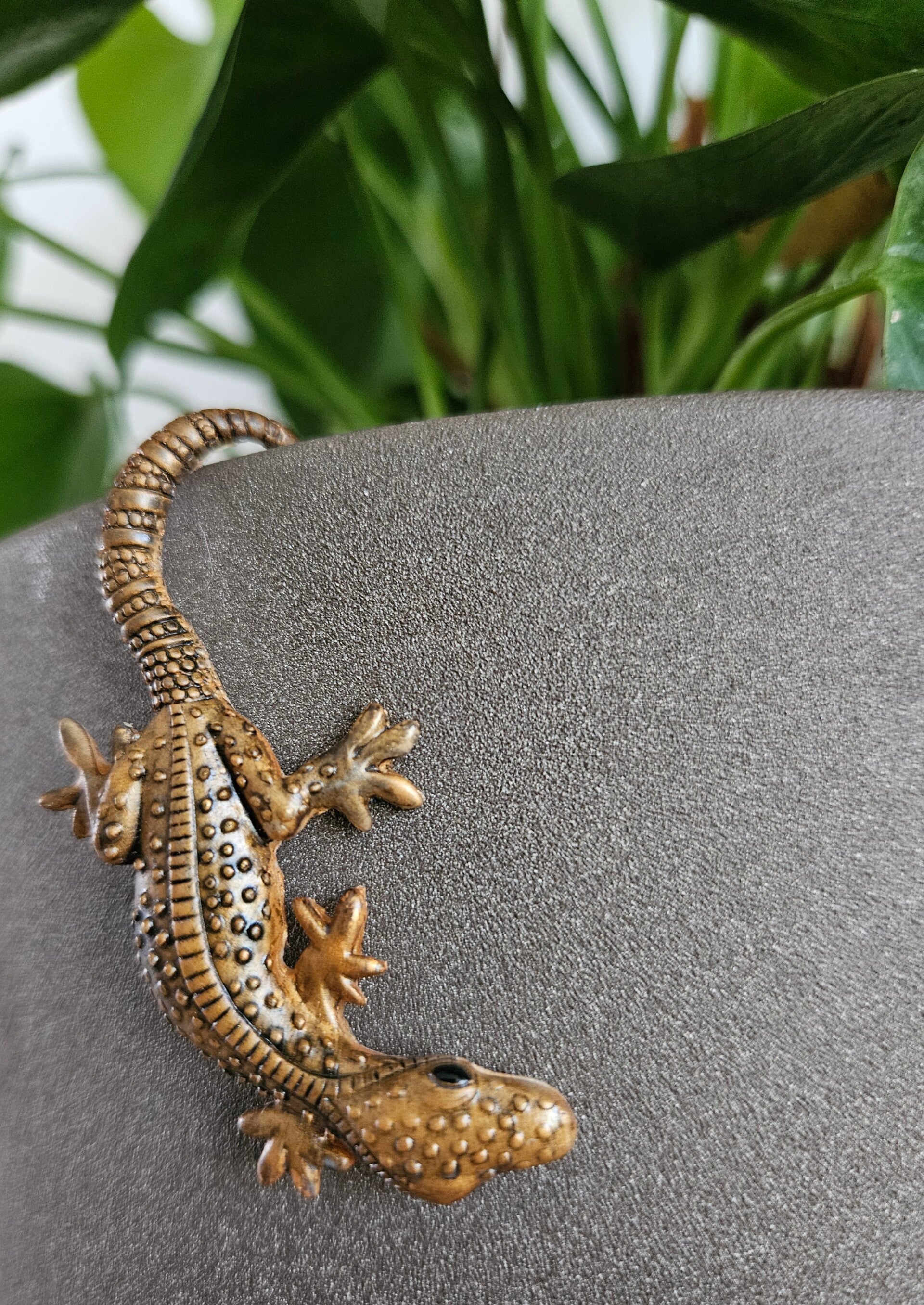 Geef je planten een verrassende twist met onze realistische epoxy hagedisjes! Met een lengte van 6,5 cm en een subtiele hoogte van 0,4 cm, hangen ze perfect over de rand van ronde plantenbakken met een dikte van ongeveer 0,5 cm.
