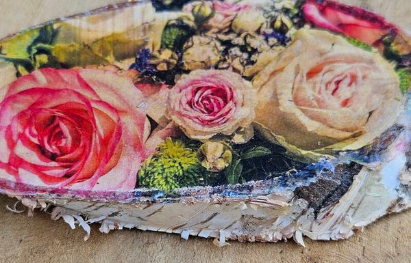 Gemaakt van een echt houten schijfje en voorzien van een zorgvuldig aangebrachte afbeelding, is elk stuk volledig uniek.
