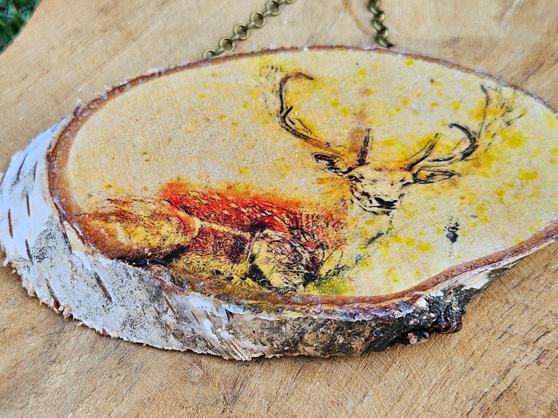 Gemaakt van een echt houten schijfje en voorzien van een zorgvuldig aangebrachte afbeelding, is elk stuk volledig uniek.
