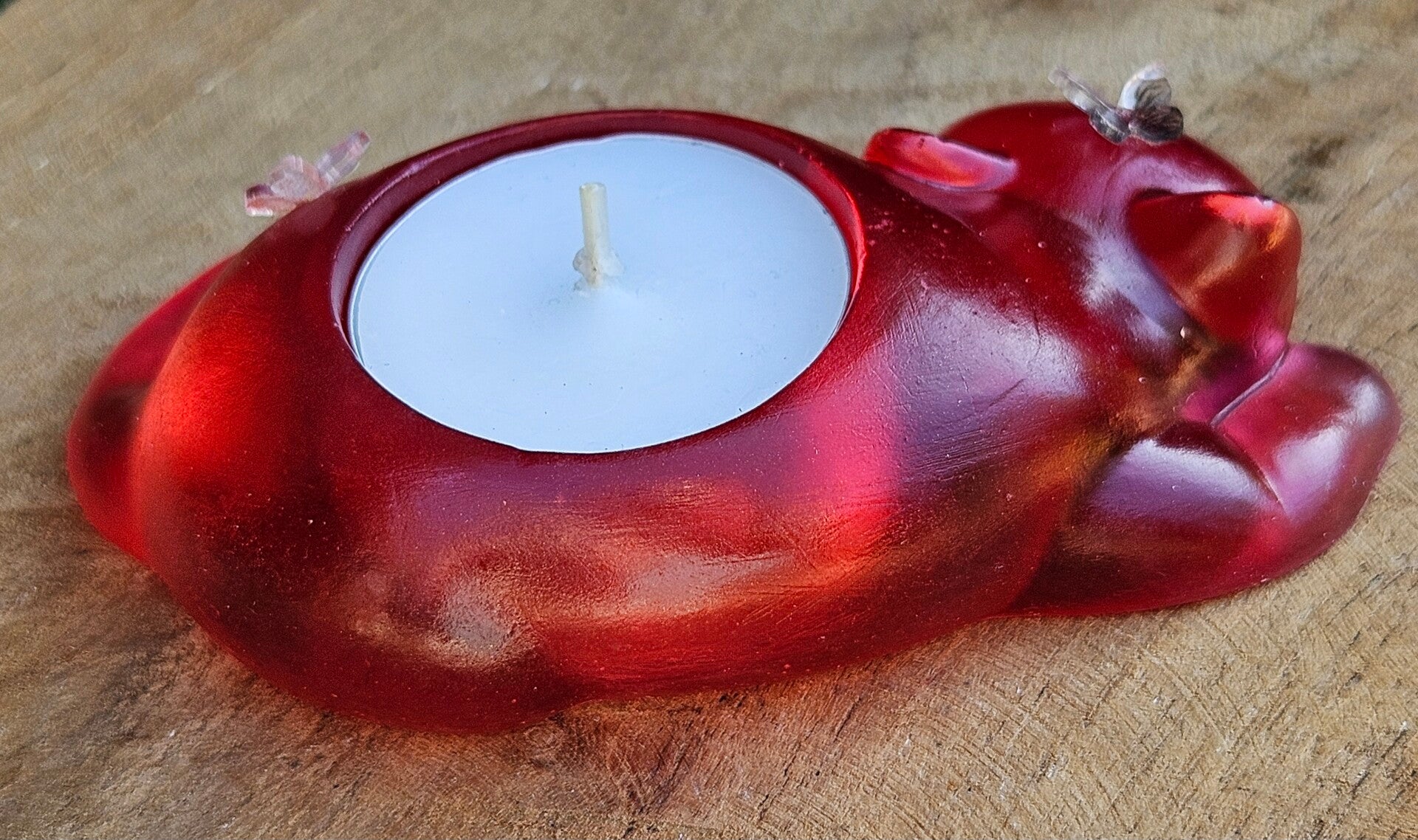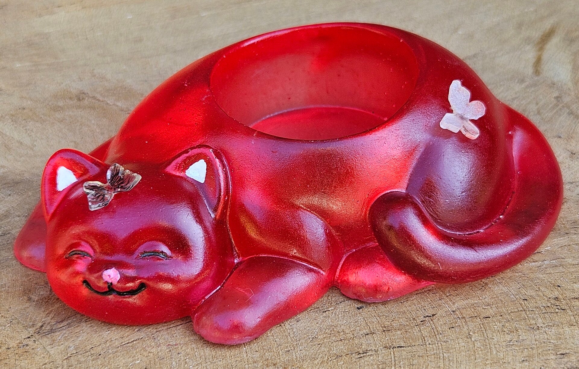 "Waxinelichthouder kat" Transparant Rood Butterfly