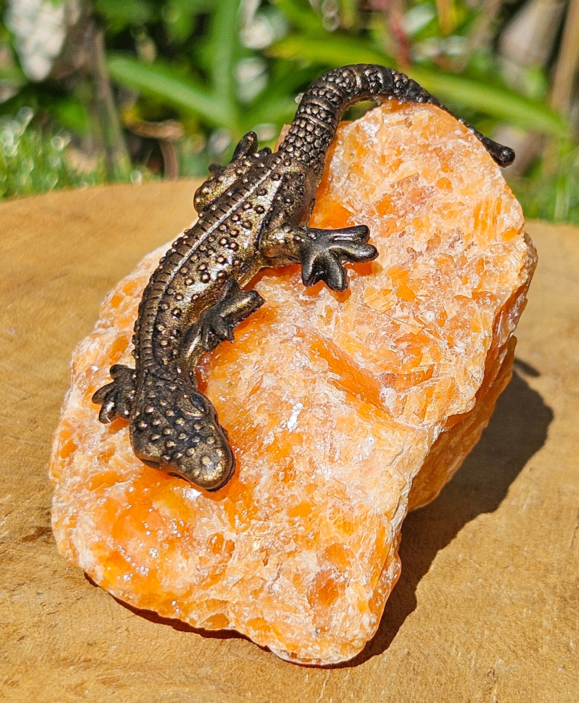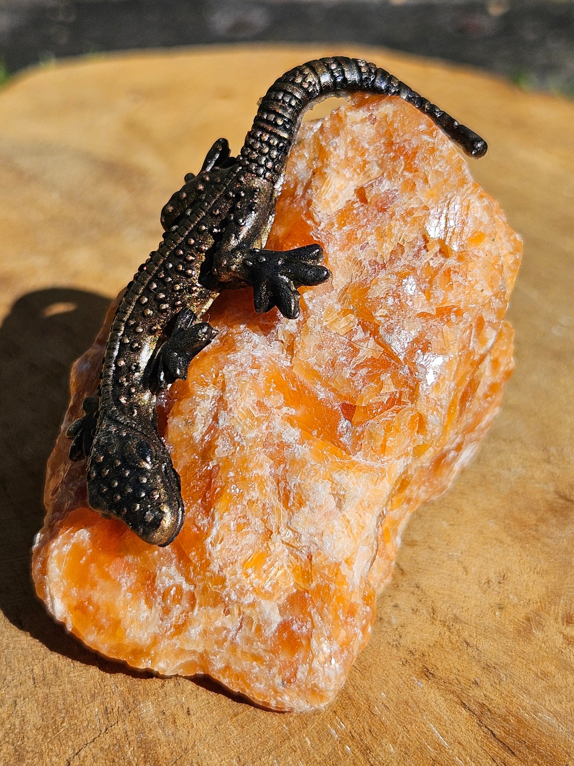 *Epoxy hagedisje op ruwe Orchidee calciet – 6,5 x 5 x 7 cm**