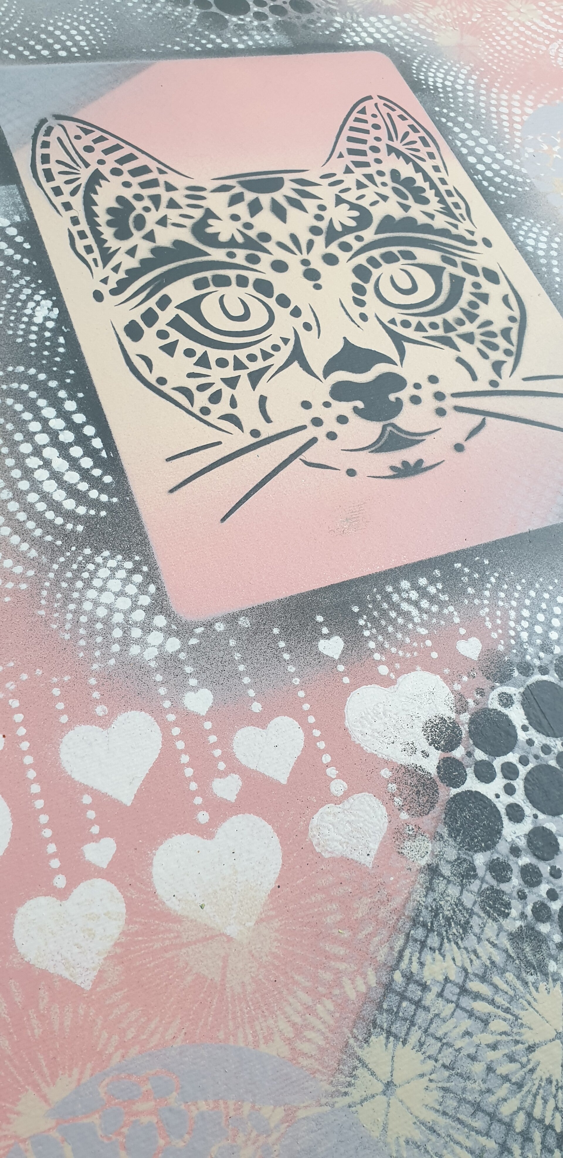 Gemaakt met spraypaint op 400 grams acrylpapier.