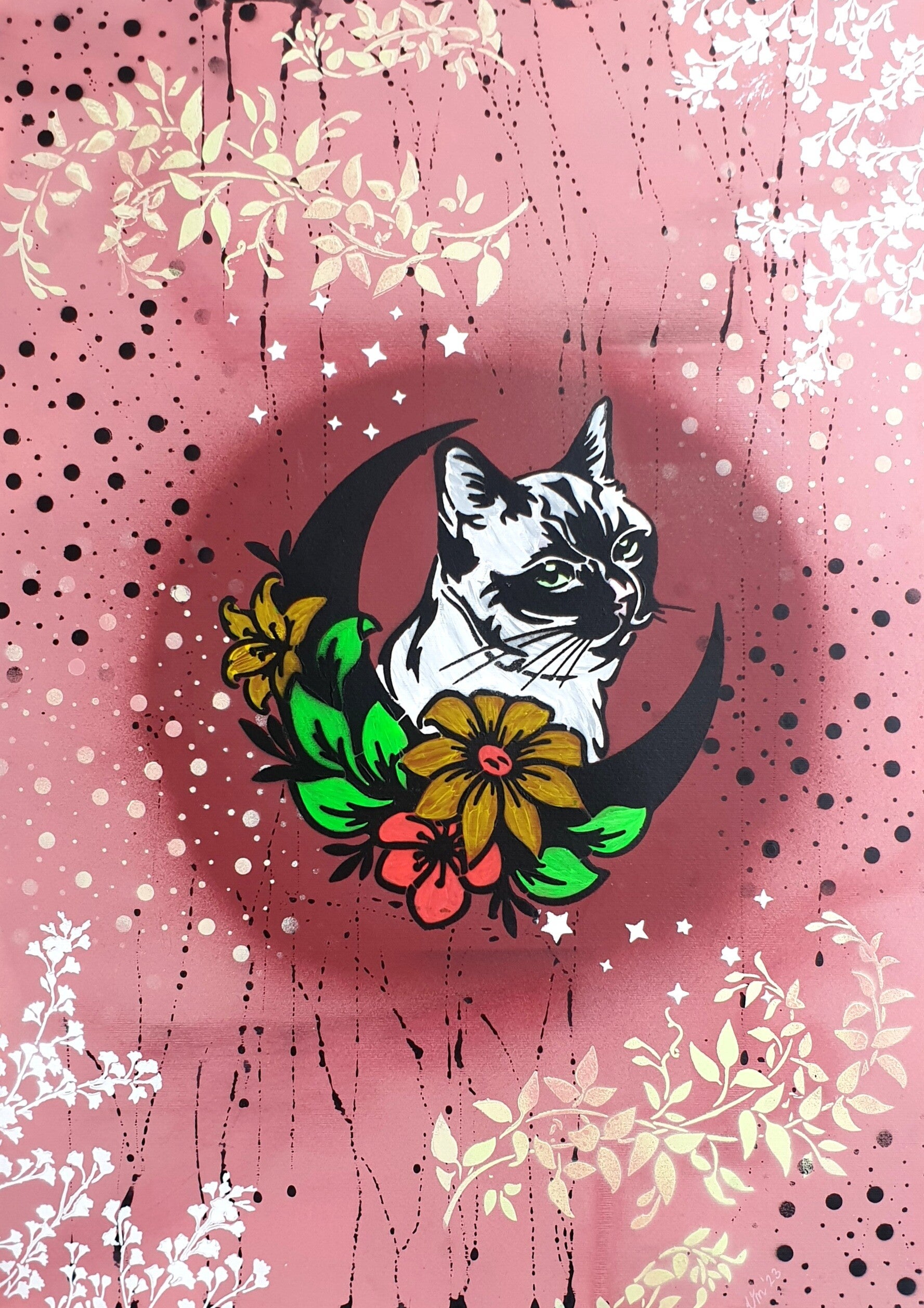 Gemaakt met spraypaint en acrylverf op 400 grams acrylpapier.