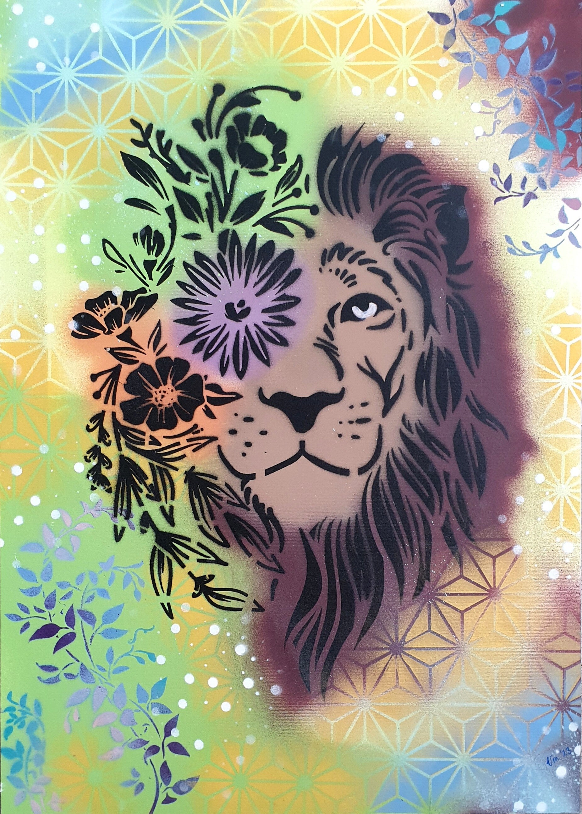 Gemaakt met spraypaint op 400 grams acrylpapier.