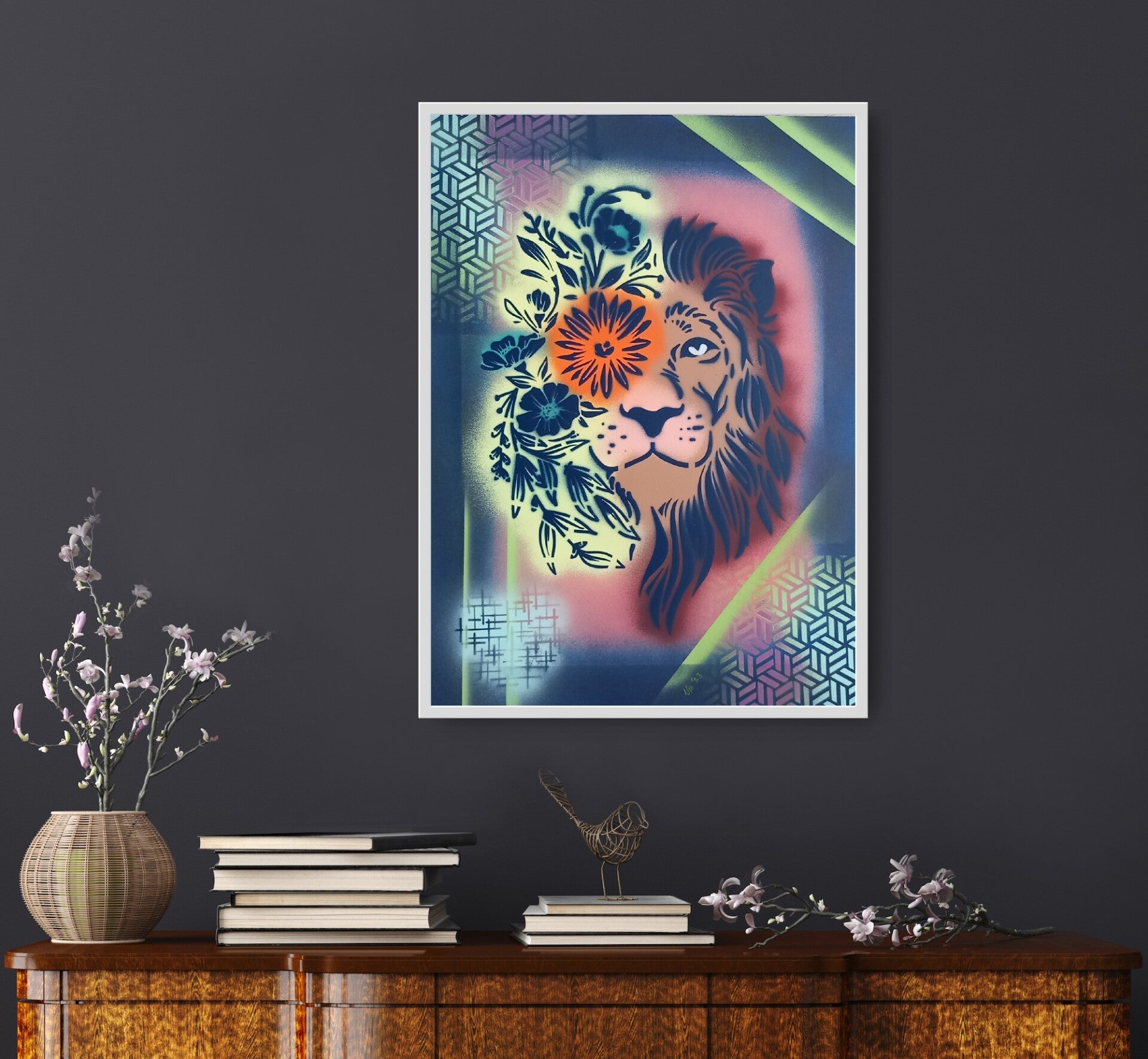 Gemaakt met spraypaint op 400 grams acrylpapier.
