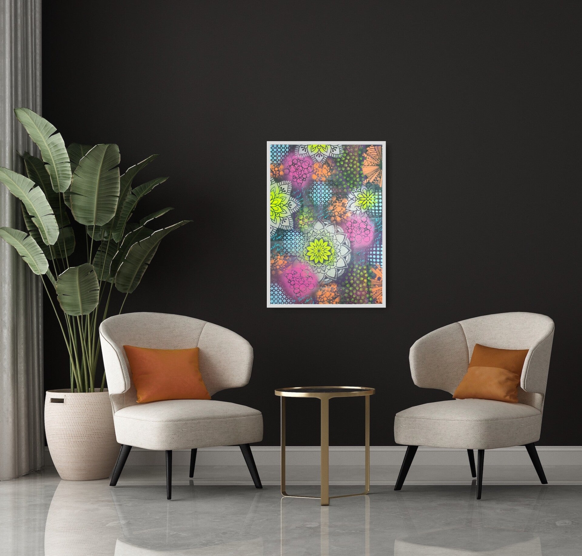 Het werk wordt zonder lijst geleverd, zodat je het geheel naar eigen smaak kunt inlijsten.