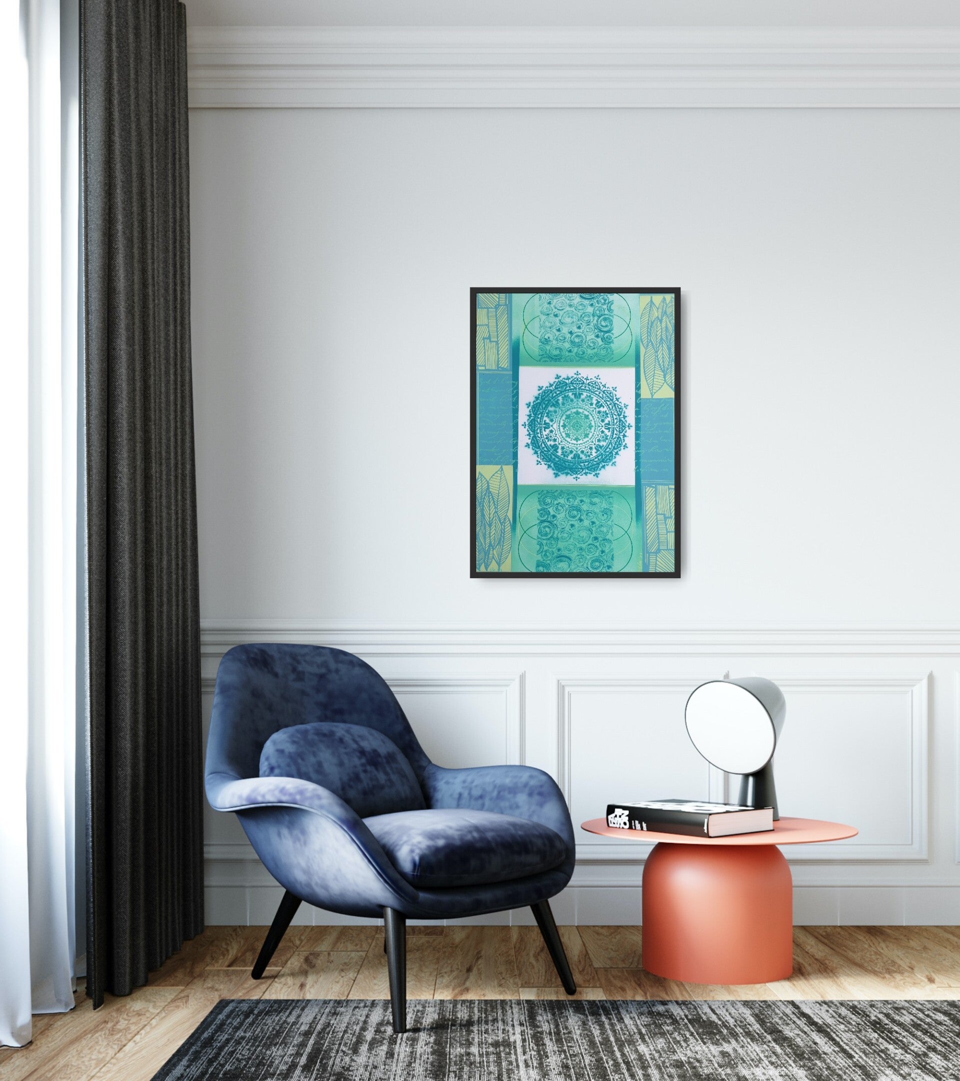 Het werk wordt zonder lijst geleverd, zodat je het geheel naar eigen smaak kunt inlijsten.