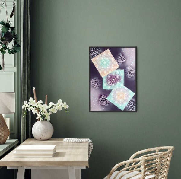 Het werk wordt zonder lijst geleverd, zodat je het geheel naar eigen smaak kunt inlijsten.