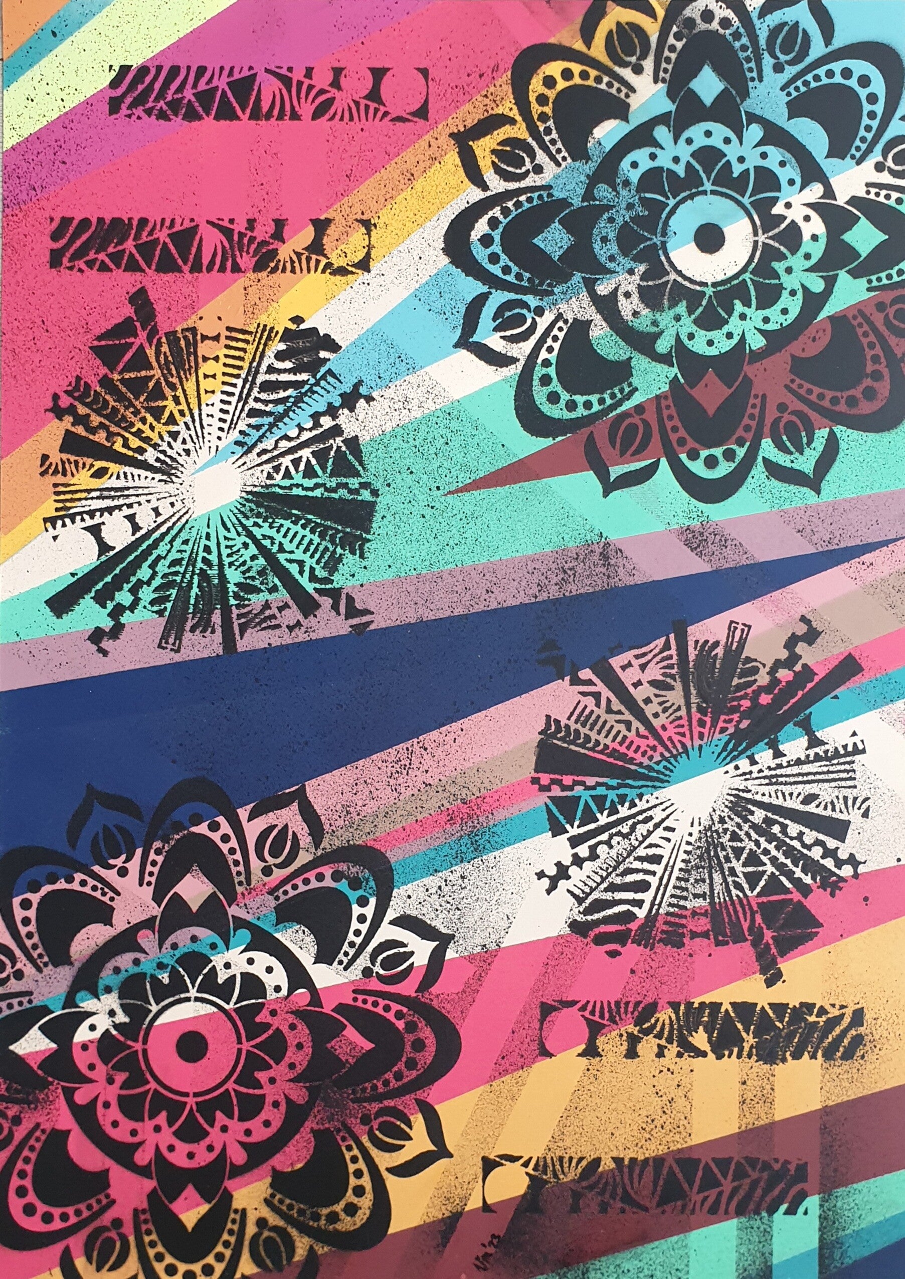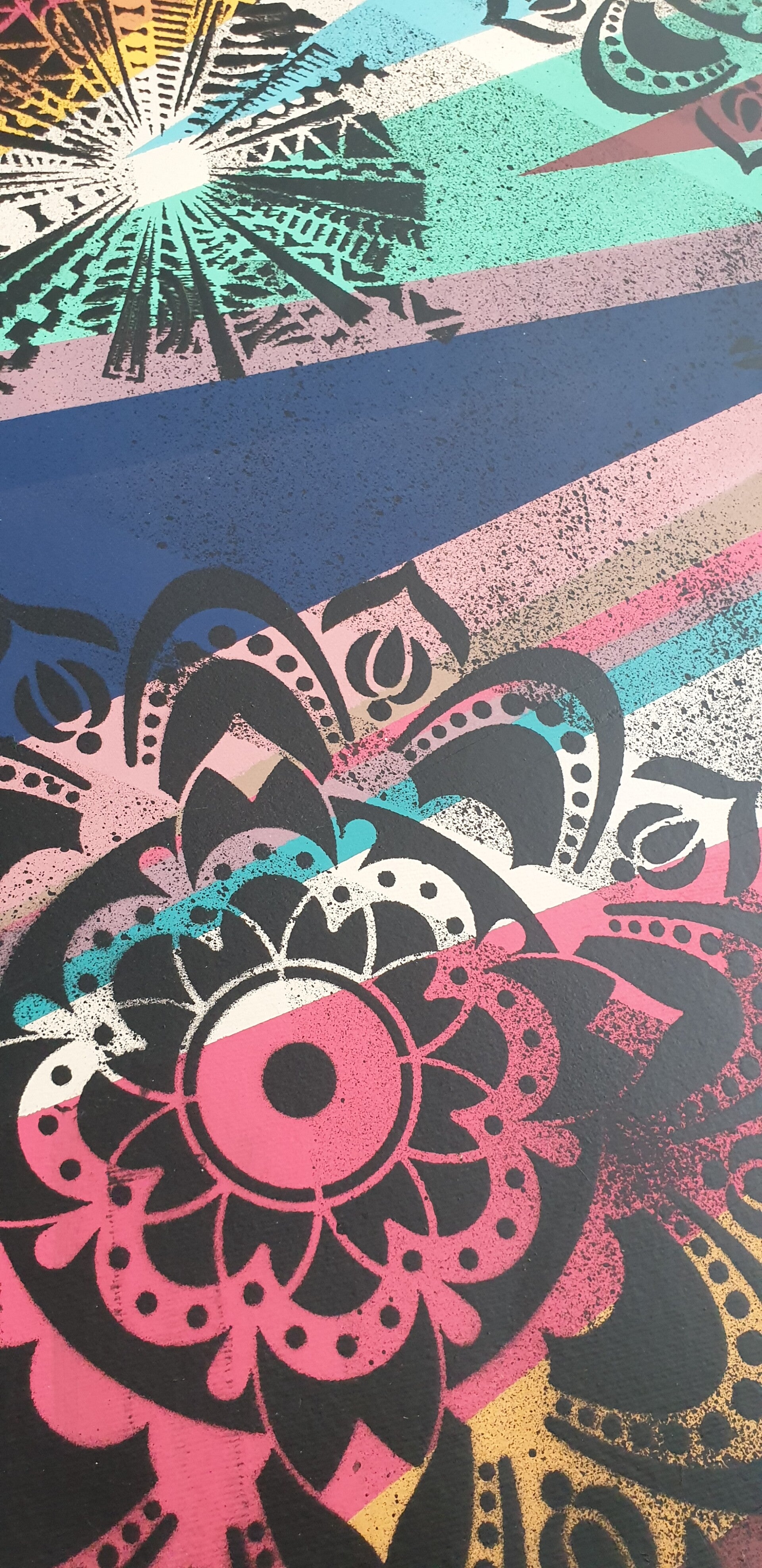 Gemaakt met spraypaint op 400 grams acrylpapier.