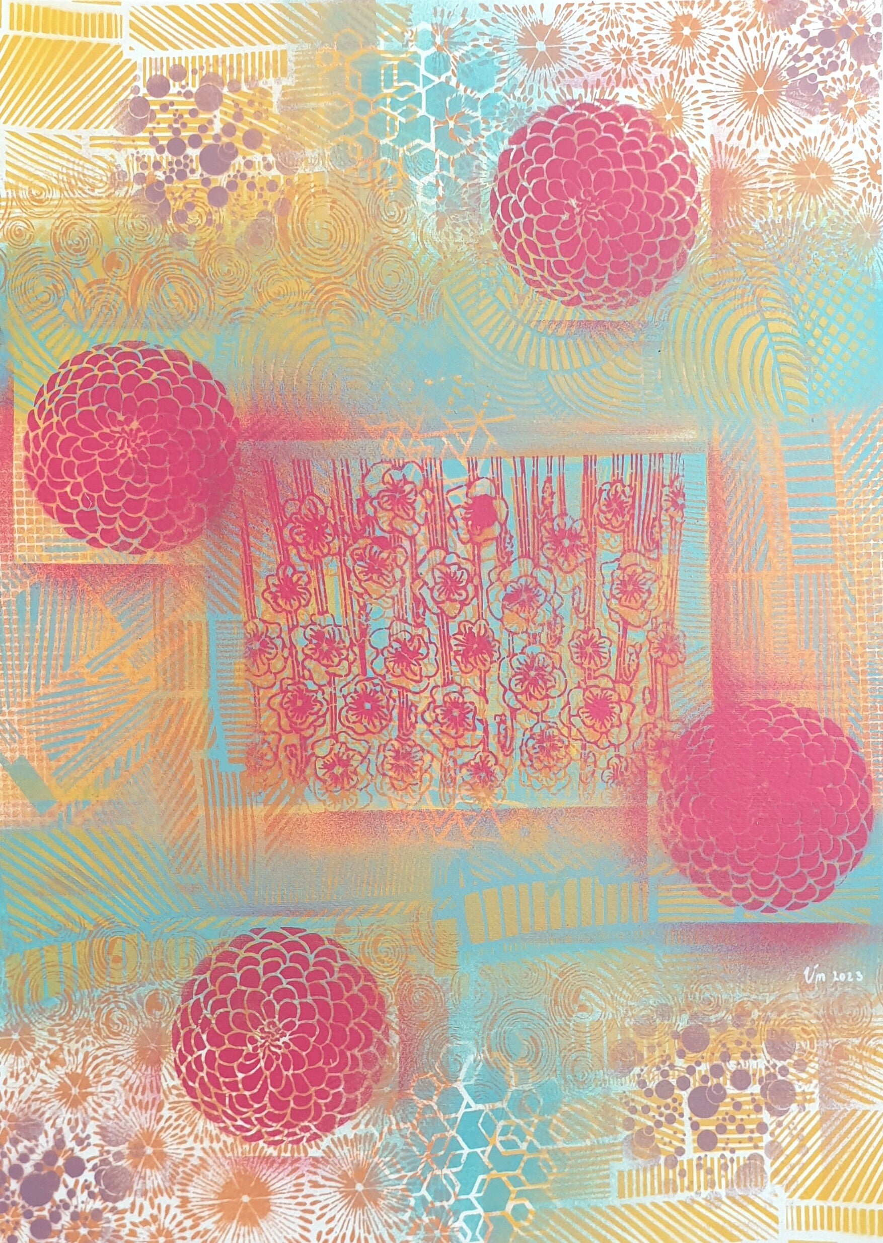 Gemaakt met spraypaint op 400 grams acrylpapier.