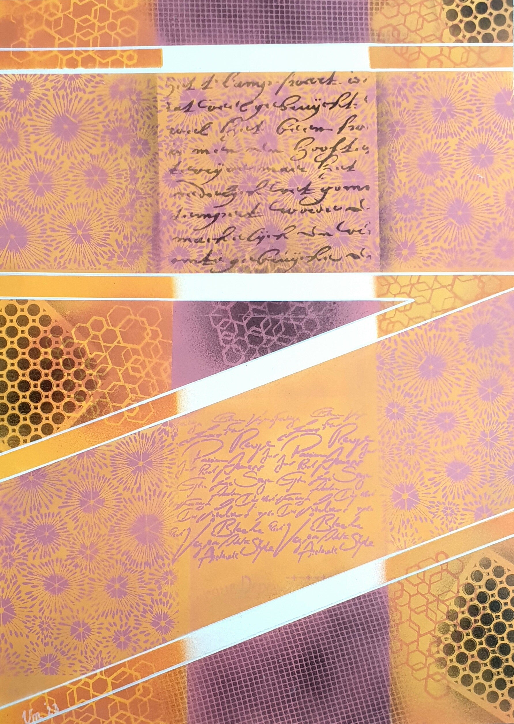 Gemaakt met spraypaint en acrylmarkers op 400 grams acrylpapier.