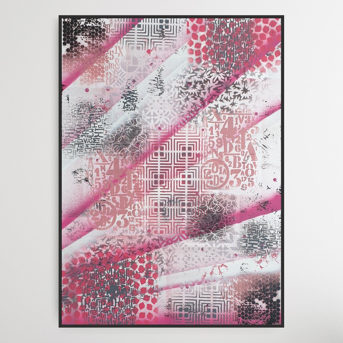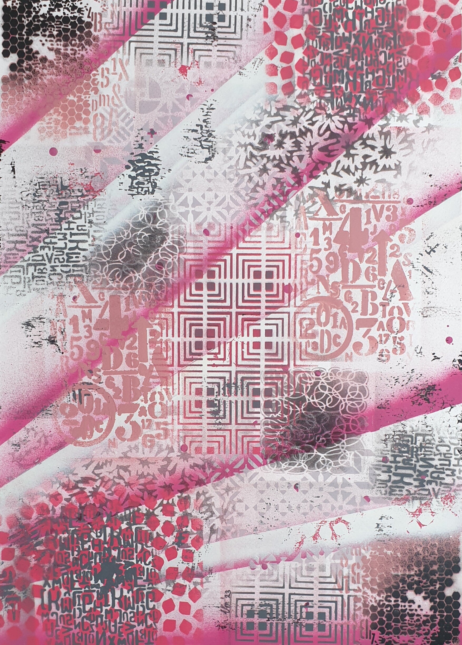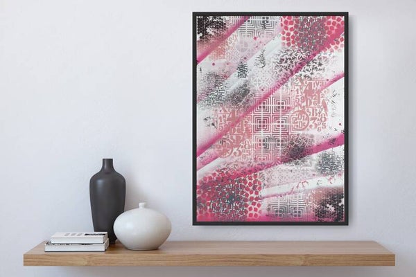 Origineel kunstwerk, geen print.Gemaakt met spraypaint op 400 grams acrylpapier.Afmetingen: 50 x 70 cm.Het werk wordt zonder lijst geleverd, zodat je het geheel naar eigen smaak kunt inlijsten.