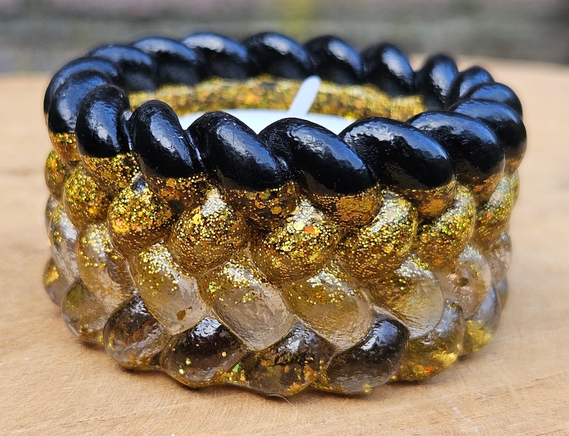Deze waxinelichthouder brengt instant gezelligheid! Handgemaakt van epoxy in de vrolijkste kleuren en geleverd met een waxinelichtje – gewoon aansteken en genieten maar. Voor een vleugje kleur en sfeer op tafel, vensterbank of bureau!