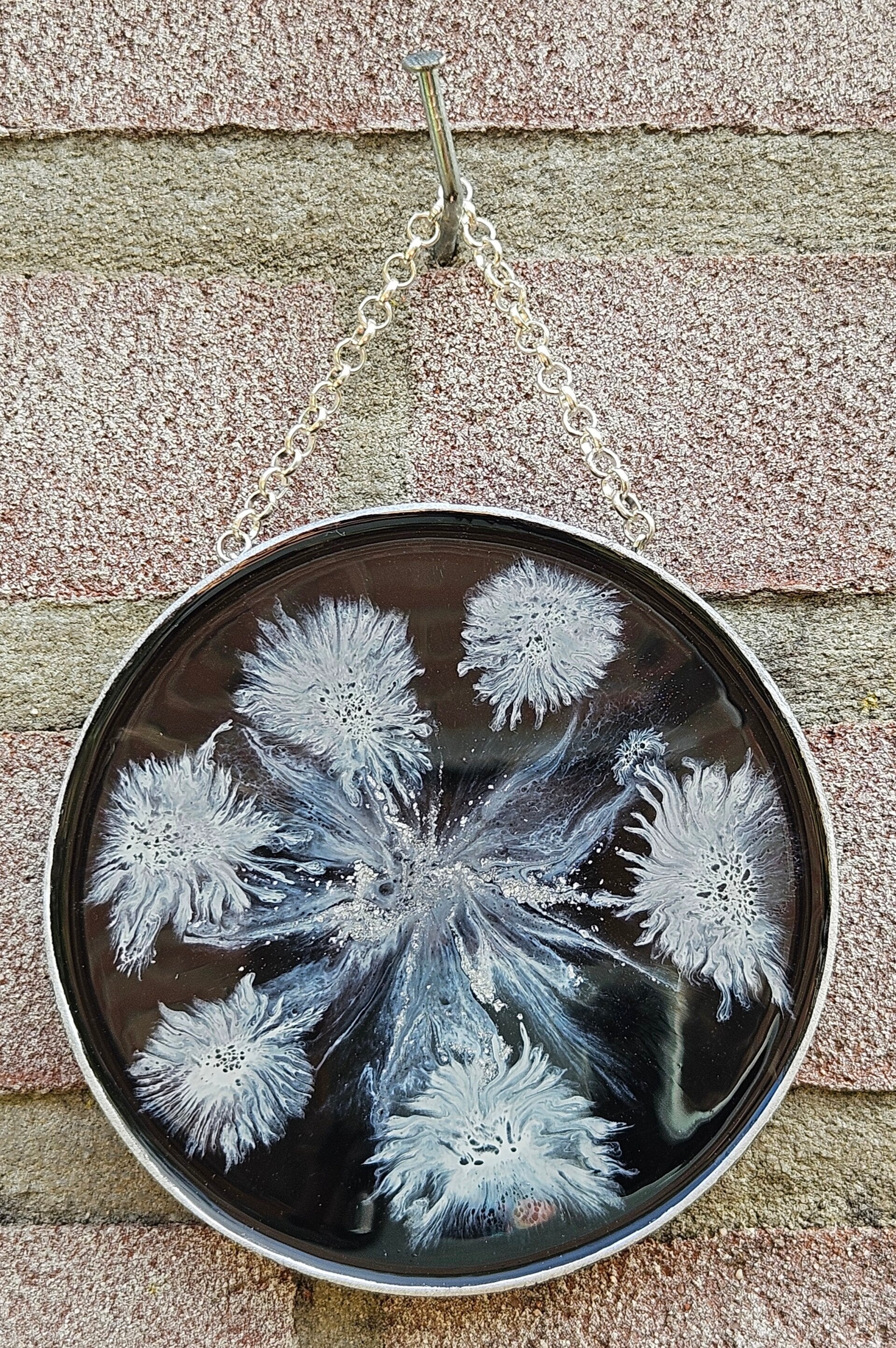 Breng kleur en vrolijkheid aan je muur met deze kleine kunstwerkje! Elke cirkel is uniek, met vrolijke kleuren die lekker spelen en opvallen. Makkelijk op te hangen, zodat je ze overal kunt laten schitteren. Perfect voor wie houdt van een beetje extra kleur en creativiteit in huis! De diameter van de cirkel is 10 cm.