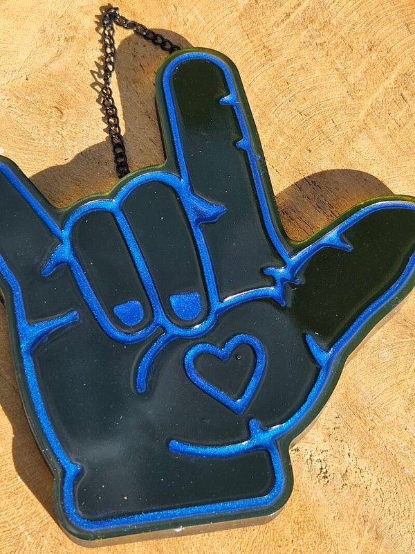 Of je nou liefde uitstraalt in gebarentaal of je innerlijke rockster laat zien – deze hanger zegt het allemaal. Met een knipoog naar zowel het "I love you"-gebaar als het iconische "metal-handje", is dit een statement piece met een hart én een randje.