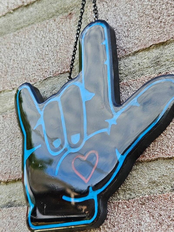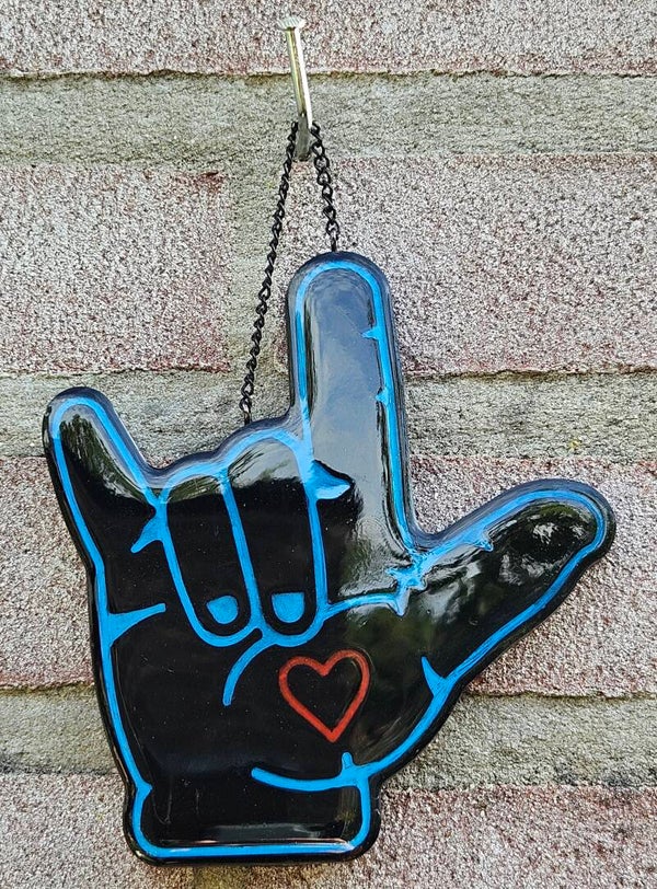 Of je nou liefde uitstraalt in gebarentaal of je innerlijke rockster laat zien – deze hanger zegt het allemaal. Met een knipoog naar zowel het "I love you"-gebaar als het iconische "metal-handje", is dit een statement piece met een hart én een randje.