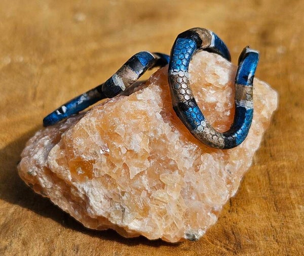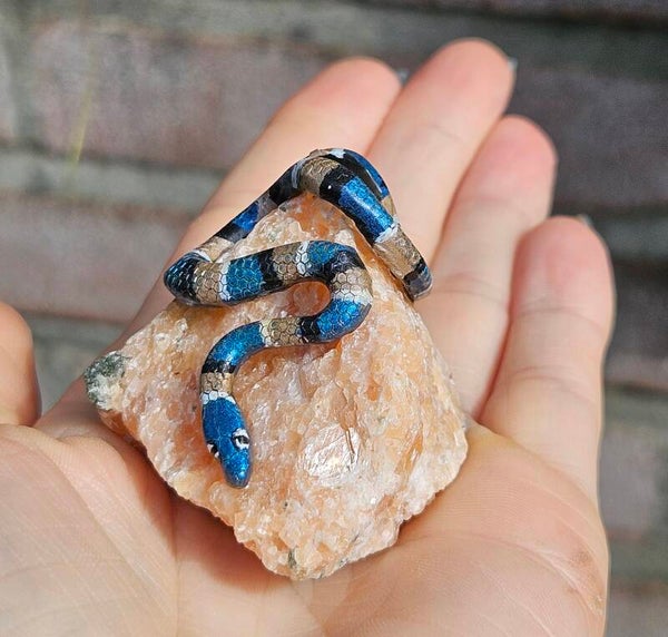 Deze bijzondere ruwe orchidee calciet is verrijkt met een klein, zelfgemaakt slangetje van epoxy, wat het geheel een uniek en artistiek karakter geeft. De natuurlijke structuur van de calciet wordt prachtig gecombineerd met het gladde, creatieve detail van het epoxy slangetje, wat zorgt voor een opvallend decoratief stuk. Perfect als bijzondere toevoeging aan je collectie mineralen of als origineel cadeau voor liefhebbers van natuur en kunst.