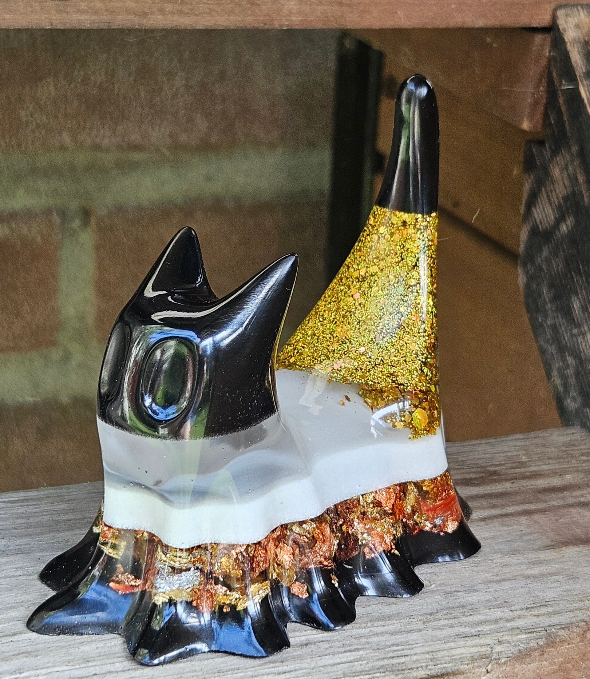 Maak kennis met *BooBoo the Cat*, een betoverende epoxy kat in een speelse spookuitvoering!