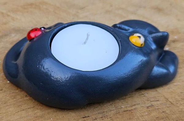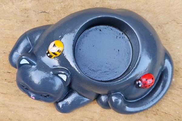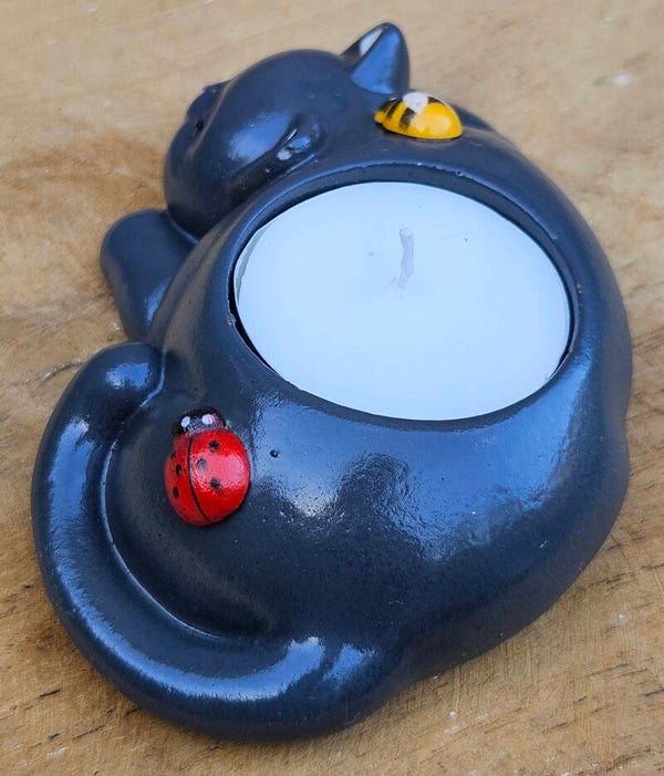 "Waxinelichthouder Kat" Antraciet Gips Bij