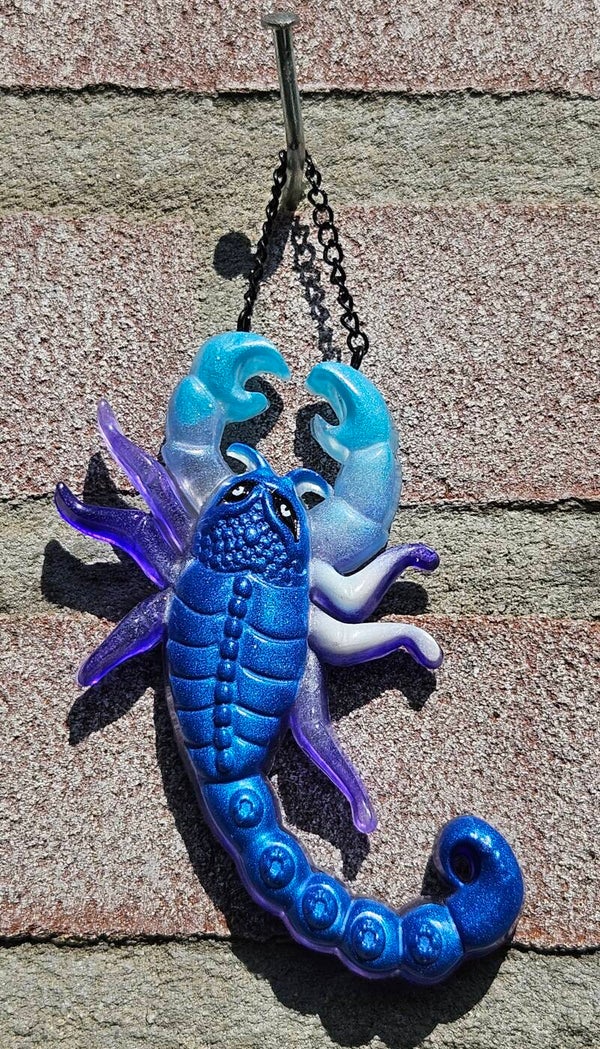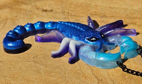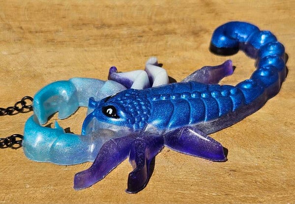 Deze opvallende hanger in de vorm van een schorpioen is een mix van verschillende kleuren en heeft een bijzonder kleurverloop. Door het glanzende oppervlak en de levendige tinten krijgt de hanger een bijzondere uitstraling – een mix van stoer, mysterieus en uniek handwerk.