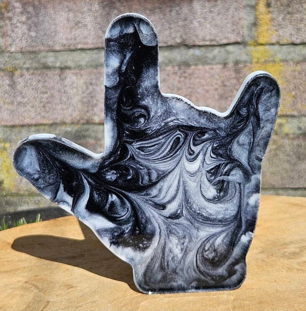 Of je nou liefde uitstraalt in gebarentaal of je innerlijke rockster laat zien – deze op zichzelf staande sculptuur zegt het allemaal. Met een knipoog naar zowel het "I love you"-gebaar als het iconische "metal-handje", is dit een statement piece met een hart én een randje.