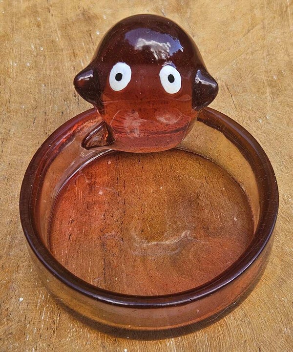 Een handgemaakt bakje (Ø 9 cm, H 7 cm) met een spookje op de rand.