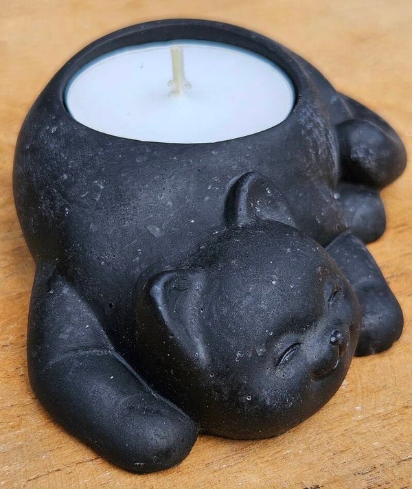 Breng sfeer en warmte in huis met dit schattige katje van epoxy. Elke waxinelichthouder is met de hand gegoten en uniek van kleur en afwerking. Perfect voor op tafel, op de vensterbank of als cadeautje voor een kattenliefhebber. Geschikt voor een standaard waxinelichtje. Er zit een waxinelichtje inbegrepen.